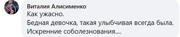 "Як жахливо. Бідолашна дівчинка. Завжди такою усміхненою була", - написала Віталія Алісименко.