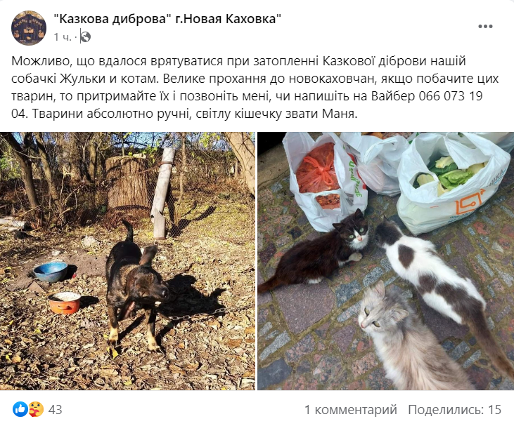 Наймовірніше, деякі тварини врятувалися, але тепер загубилися в місті. У "Казковій діброві" мають надію, що собака Жулька та коти вижили. Тваринки мешкали на території звіринця.