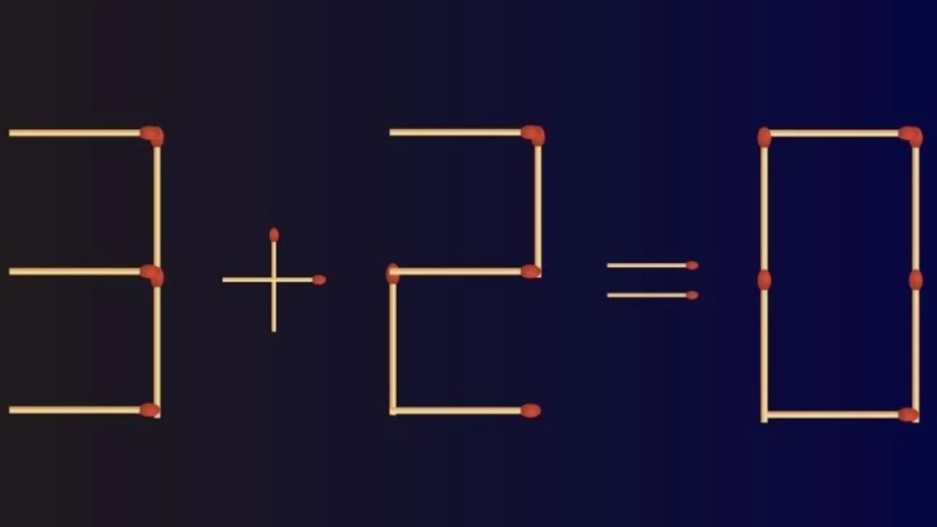 Доволі складне завдання з сірниками, але ми віримо у вас. Зробіть правильним рівняння 3+2=0, перемістивши два сірники.