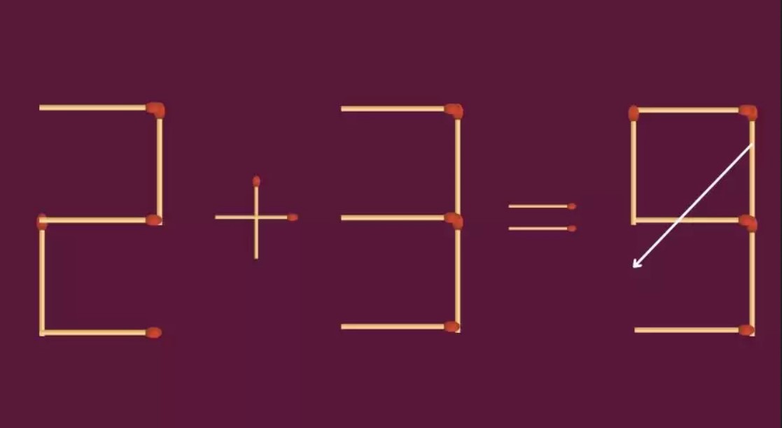 Зробіть рівняння 2+3=9 правильним. Потрібно пересунути два сірники, щоб розв'язати задачу.