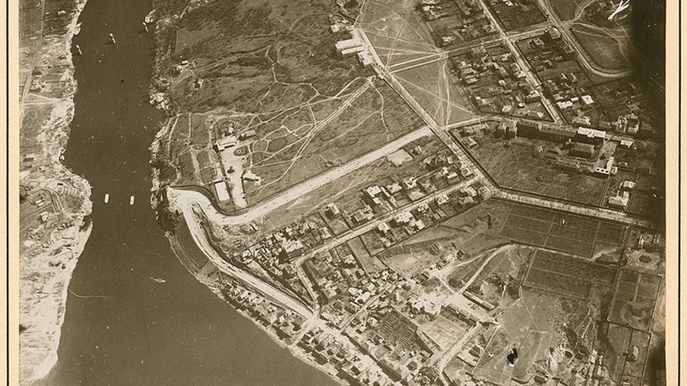 На унікальних архівних світлинах зображена столиця України у 1918 році з висоти пташиного польоту. На кадрах з літака можна впізнати Дніпро, лівий, правий берег столиці та багато інших історичних пам'яток міста.