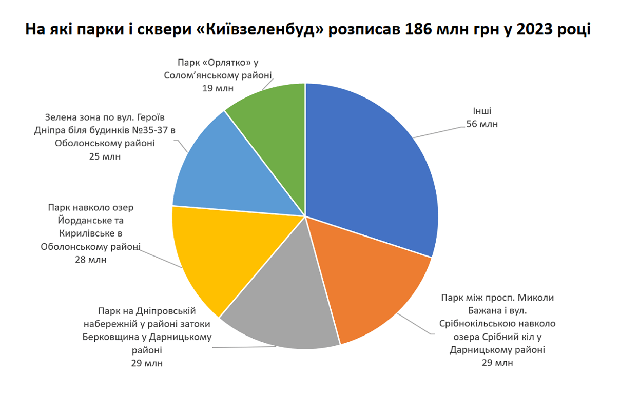 За даними ЗМІ, 70% цьогорічної суми (130 млн грн) пішло на поліпшення пʼяти парків: