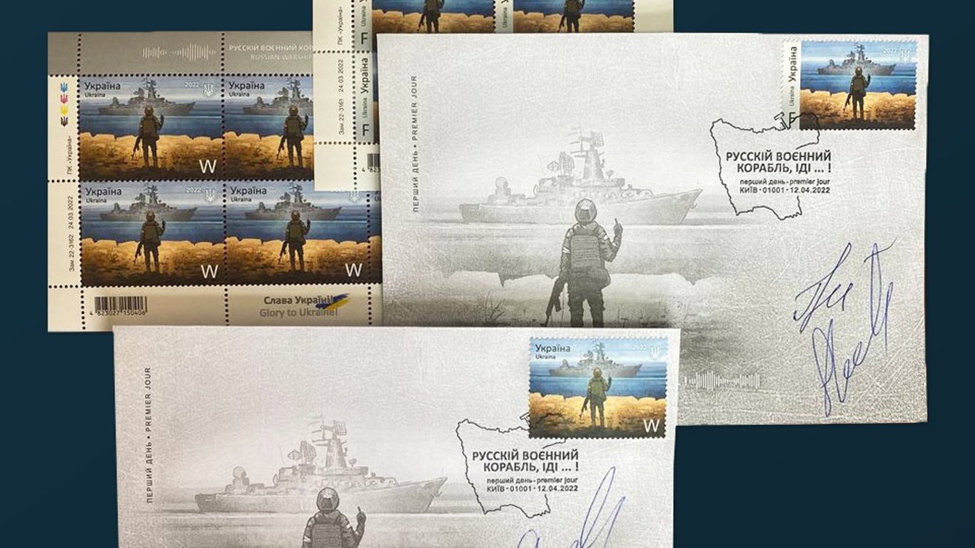 На благодійному аукціоні продали ексклюзивну поштову марку "Русский военный корабль, иди на**й" за 5 мільйонів гривень.