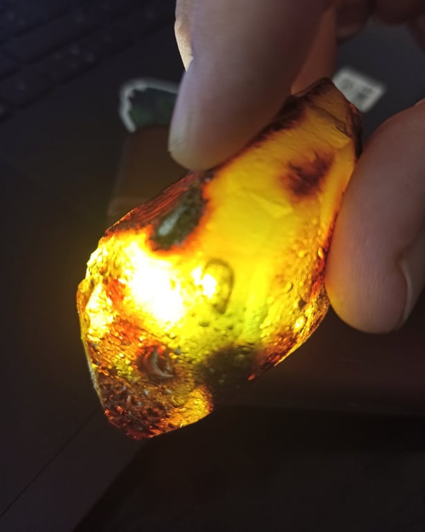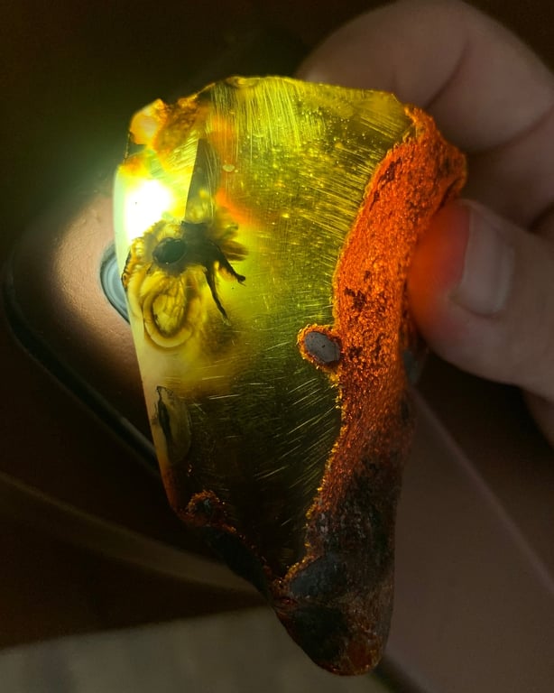 Зазначається, що комаха потрапила у смолу давніх дерев і затверділа, ставши бурштином. Це явище називають інклюзією, тобто включенням.