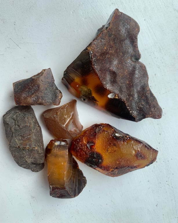 "Інколи у бурштинових шматочках трапляються залишки або цілі листочки давніх рослин, різних павукоподібних: кліщів, павуків, скорпіонів, а також комах — примітивних безкрилих, двокрилих. Це дозволяє вченим краще вивчити стародавній світ", — йдеться в повідомленні.