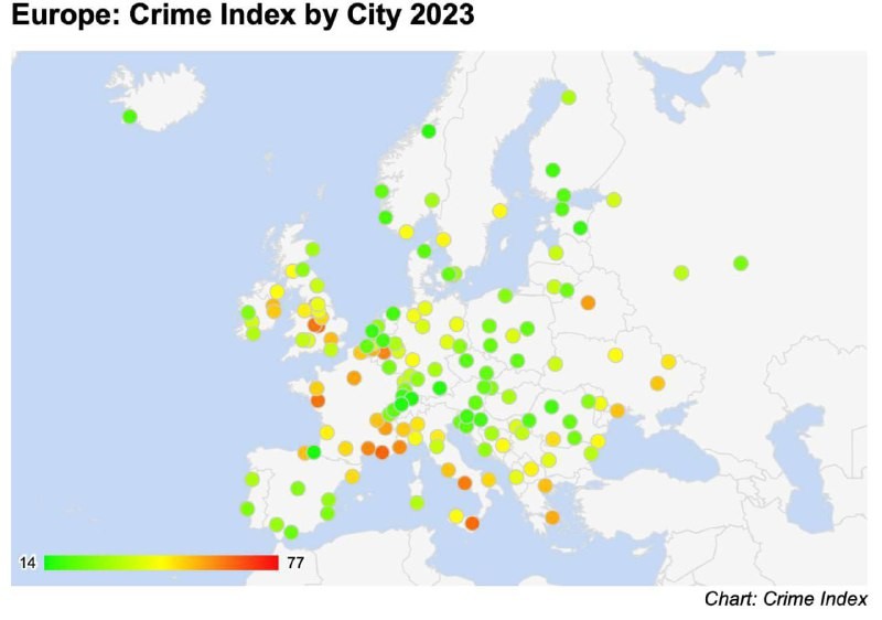 До найнебезпечніших європейських міст за рівнем злочинності ввійшли українські міста Одеса, Дніпро, Харків, Київ, Львів.