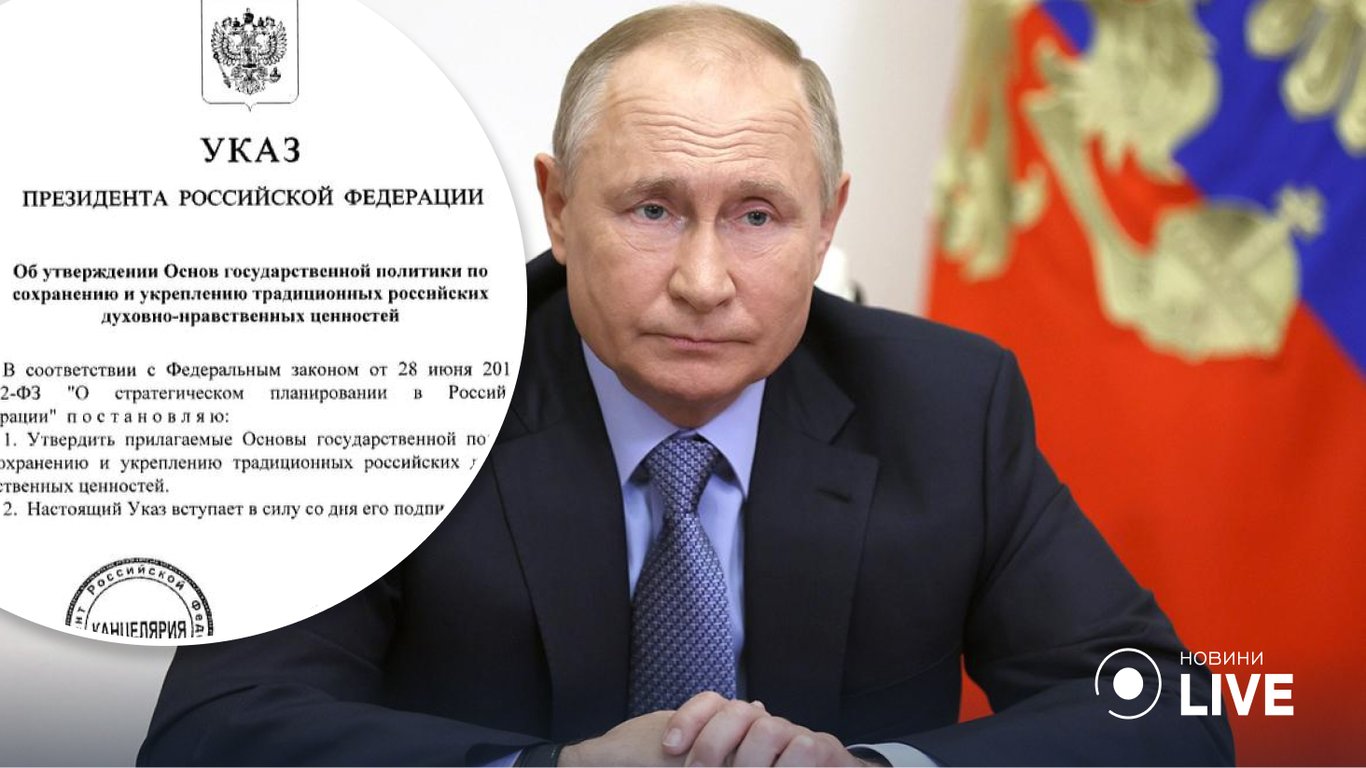 Російський президент володимир путін підписав указ, де йдеться про орієнтири для духовних-моральних цінностей для росії. Там йдется про державну політику щодо їх збереження.