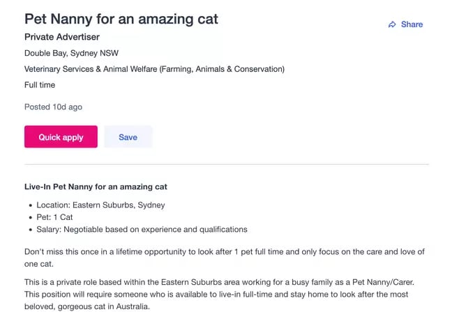 Безплатне проживання в розкішному маєтку в Сіднеї та солідна винагорода чекає на того, хто просто піклуватиметься за домашньою тваринкою. Одна австралійська родина шукає на постійну основу няню для свого котика.