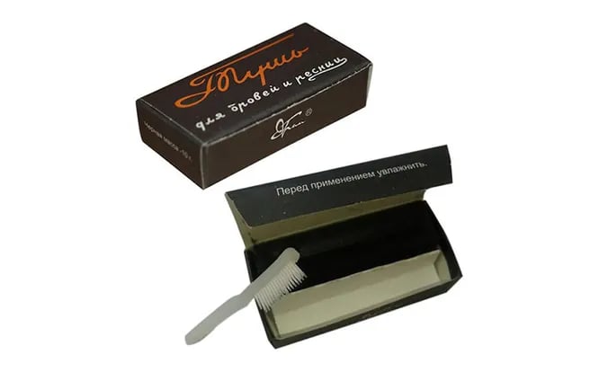 Та самая тушь, которой наши мамы могли красить ресницы, была в косметическом арсенале у каждой девушки. В упаковке, напоминающей спичечный коробок находилась сама тушь в твердом виде и маленькая кисточка для нанесения.