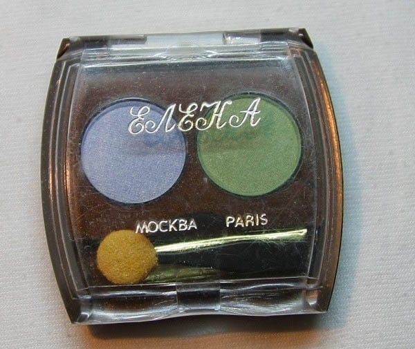 Тени в СССР выпускала московская фабрика “Рассвет”, назывались они “Елена”. Оттенки в двух или трехцветных наборах были, что называется, вырви глаз: голубые, зеленые, фиолетовые. Позже стали появляться цвета спокойнее. А еще некоторым удавалось добыть польские тени.