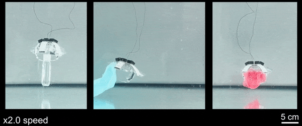 При перемещении Jellyfish-Bot жидкость протекает под мягкие ножки и шапку под влиянием давления, словно медуза ловит добычу. Разработчики предусмотрели, что робот сможет использовать отдельные щупальца для содержания предметов, в то время как остальные части его мягких ножек продолжат обеспечивать движение.