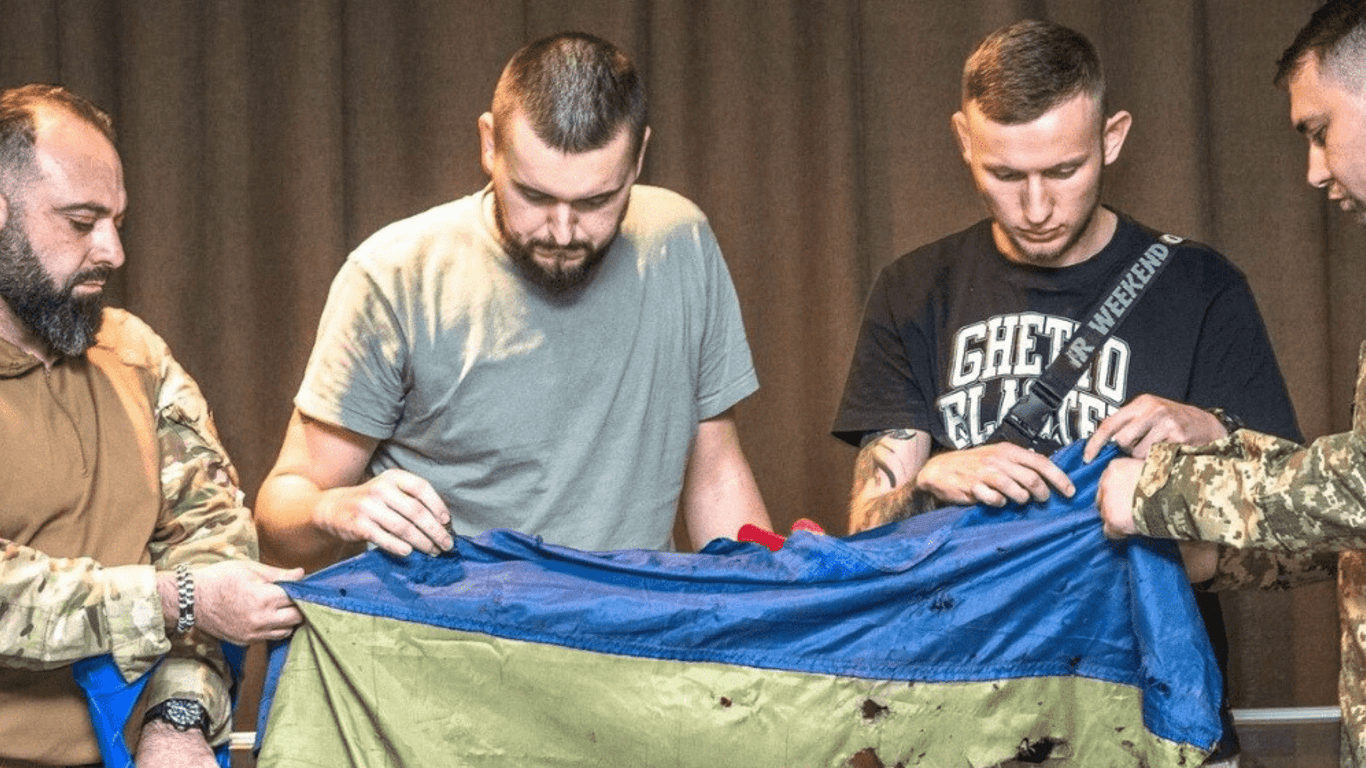 Украинские военные передали в музей флаг Украины, развевающийся над заводом "Азовсталь" в Мариуполе. Он, как и раненые воины, был спасен из ада сталеварной.