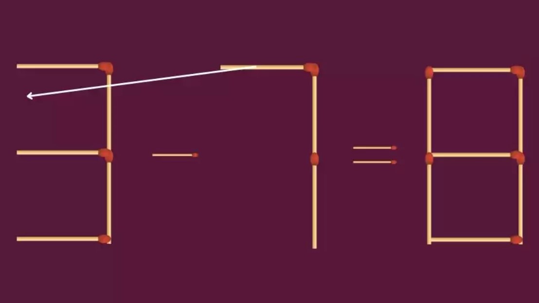 Сделайте уравнение 3-7=8 верным. Нужно передвинуть только одну спичку.