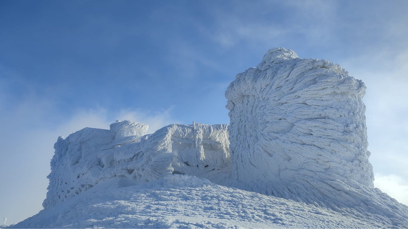 Гору Поп Иван замело снегом после сильного шторма: впечатляющие фото
