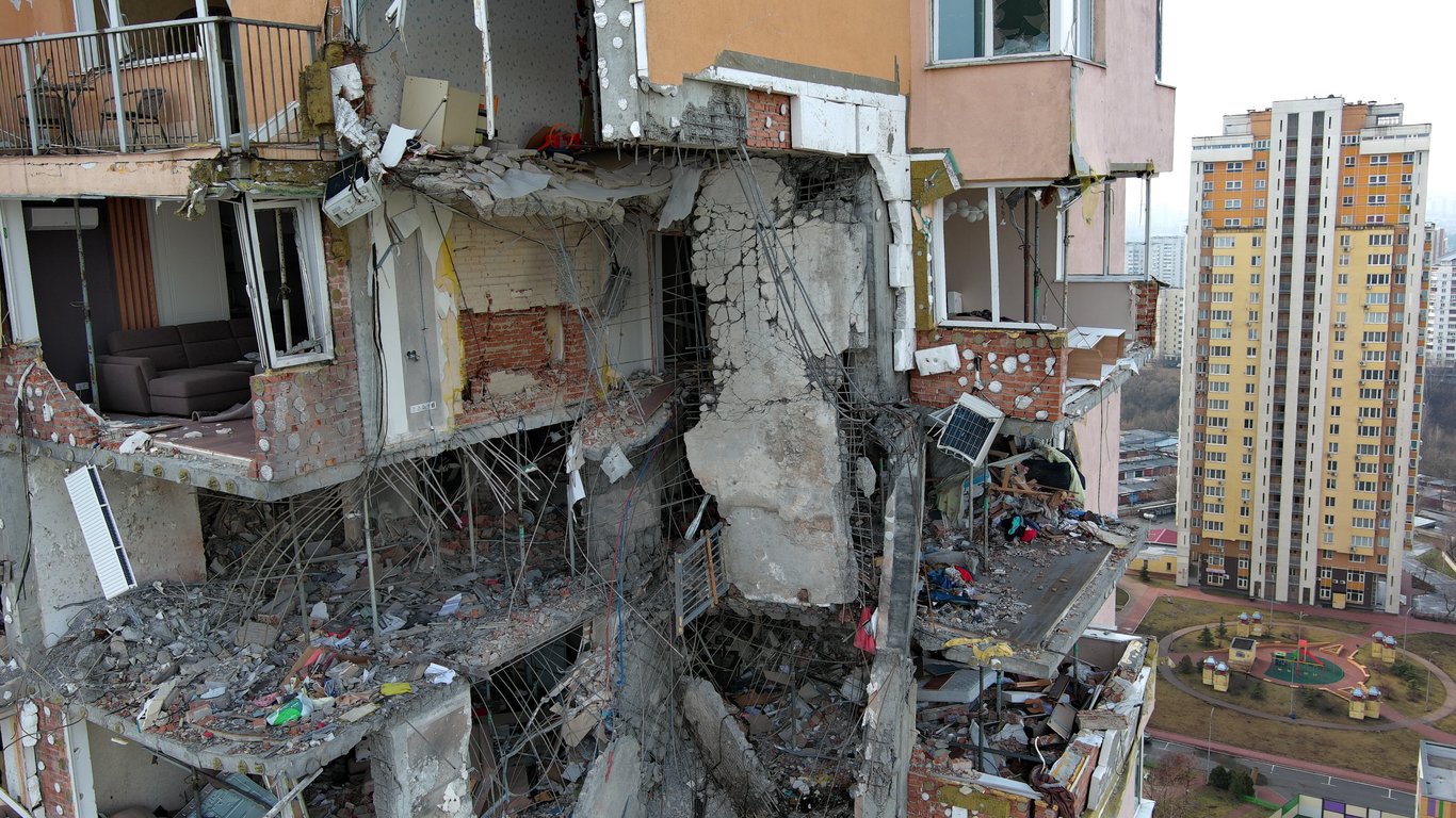 Около 9 утра 26 февраля 2022 года в 25-этажку по проспекту Лобановского 6а в Киеве попала российская ракета. Это был третий день полномасштабного вторжения российкой армии в Украину. Ракета зашла под углом и разрушила шесть квартир на четырех верхних этажах — с 18 по 21. Они не были пригодны для жизни.