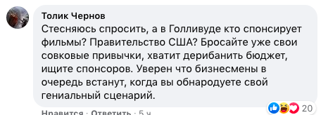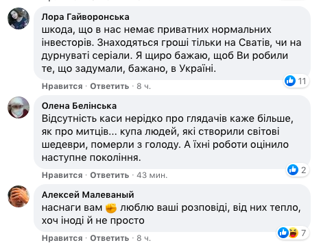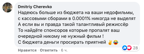 Подписчики Сенцова, тем временем, высказали ему слова поддержки. Они написали, что пока у власти создатели "Сватов", надеяться на финансирование его фильмов не стоит. И добавили, что обычно гениальность работ оценивают лишь следующие поколения.