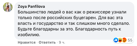 Многие пользователи соцсетей захейтили публикацию режиссера. Они написали, что оснований обижаться на нынешнюю власть нет, поскольку ему достаточно помогли, когда вытащили из тюрьмы, а сами фильмы Сенцова действительно "слабые".