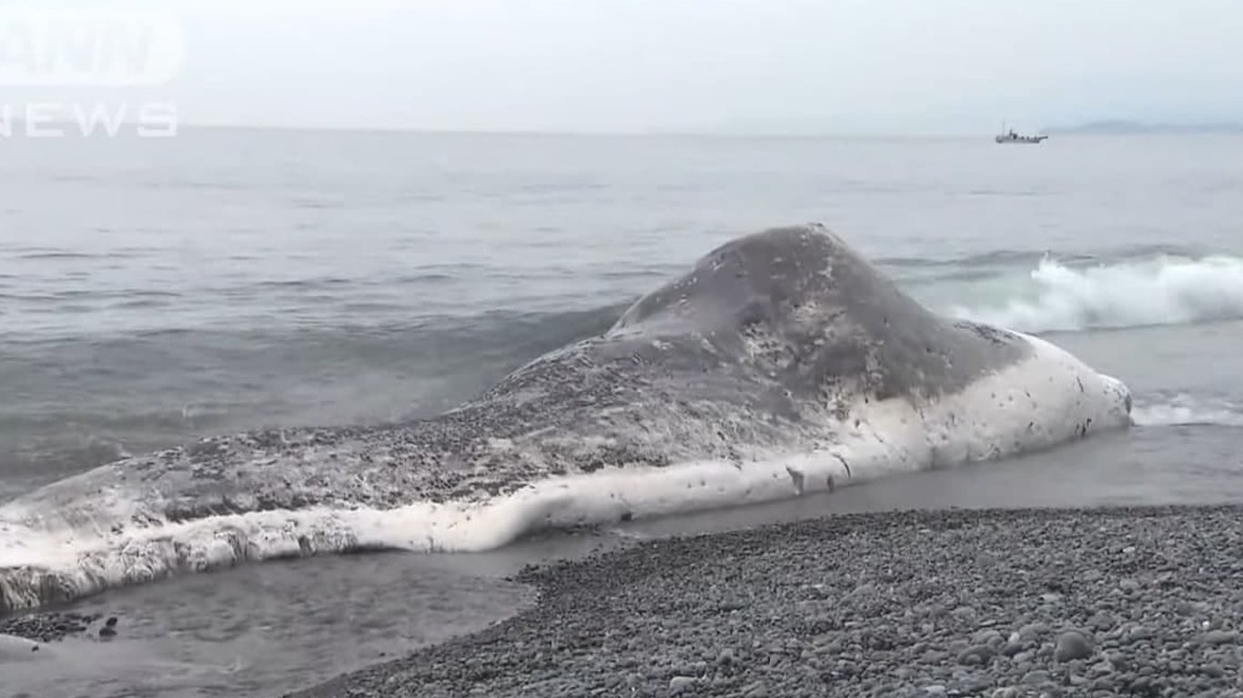 Местные видели такого впервые: в Японии на берег моря выбросило 14-метрового кашалота. Видео