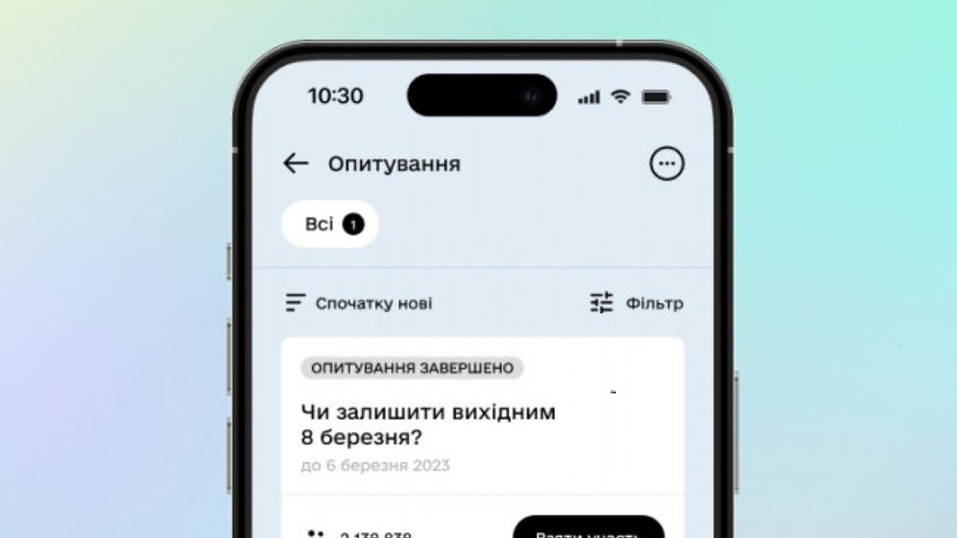 В Минцифре отмечают, что этот опрос стал самым массовым среди всех 11 голосований, реализованных в "Дії". В нем приняли участие более 2,1 миллиона украинцев.