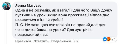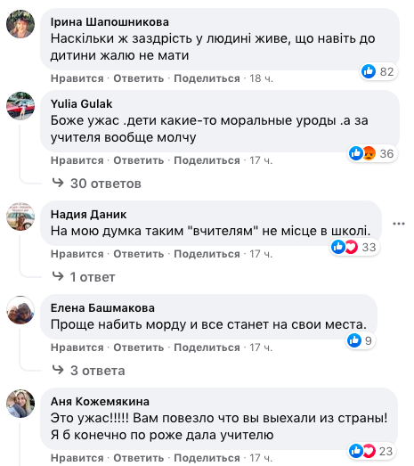 Другие же пользователи написали, что это открытая травля и такой учитель должен быть отстранен от работы. А еще - матери пострадавшей девочки посоветовали нанять адвоката и подать иск в суд.