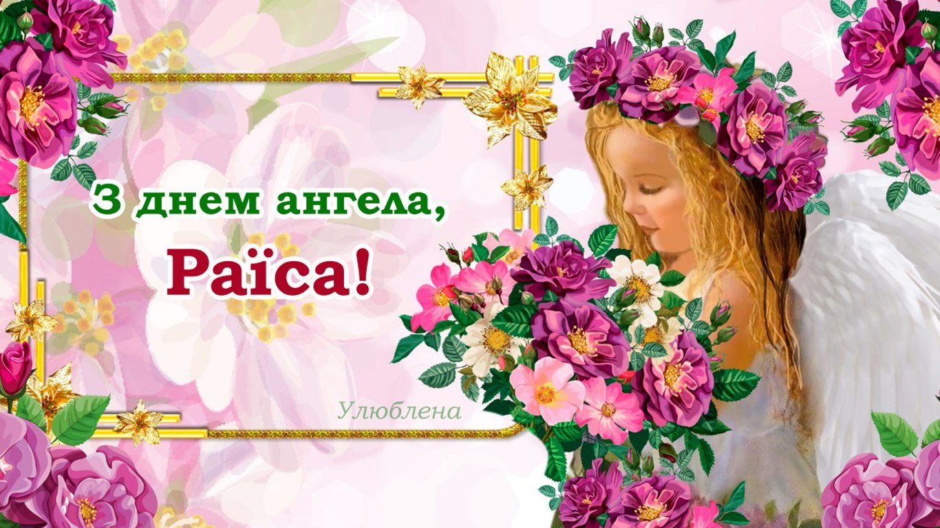 Желаю в День Ангела Раисы большой любви и крепкой веры, светлых надежд и доброты души, искренних чувств и понимания с близкими, мудрых решений и благих поступков. Пусть ангел всегда тебя уберегает от всего дурного.