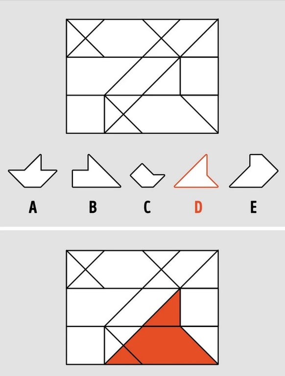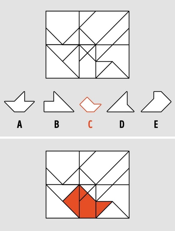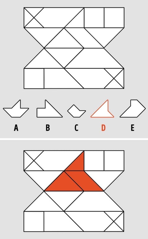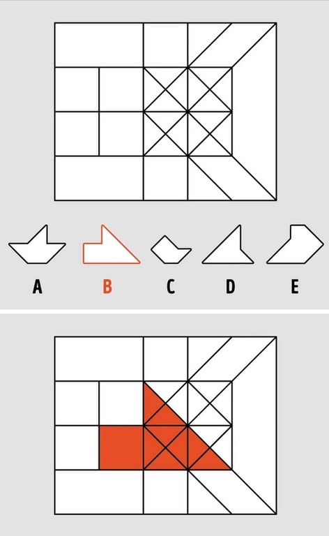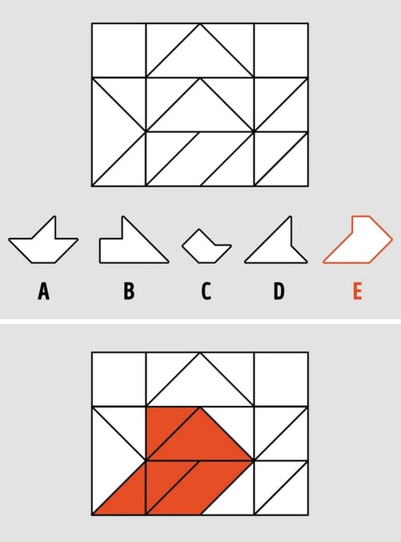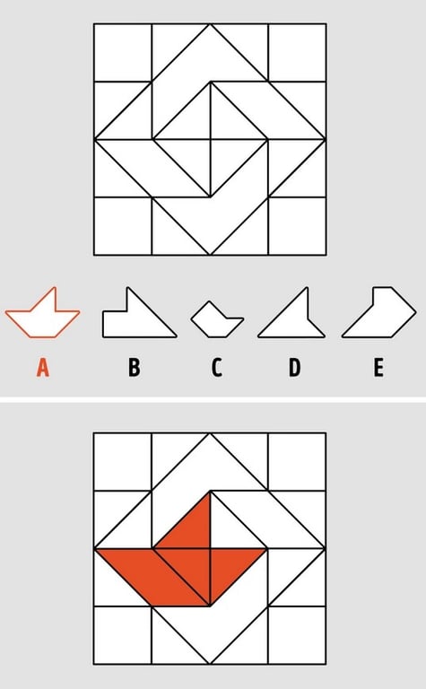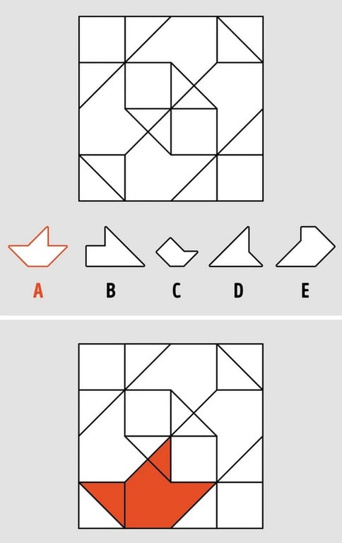 Один из этих тестов предлагаем пройти вам. Надо среди маленьких фигурок найти, какая из них прячется в большой фигуре.