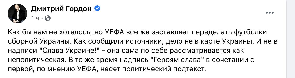 - УЕФА обязал сборную Украины убрать надпись " Героям слава” из новой формы для Евро-2020.