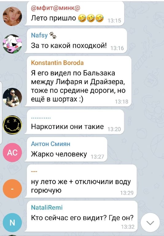 Очевидцы в комментарии под видео написали, что бедняге просто стало жарко. До этого, его видели еще в шортах на улице Бальзака между Лифаря и Драйзера.