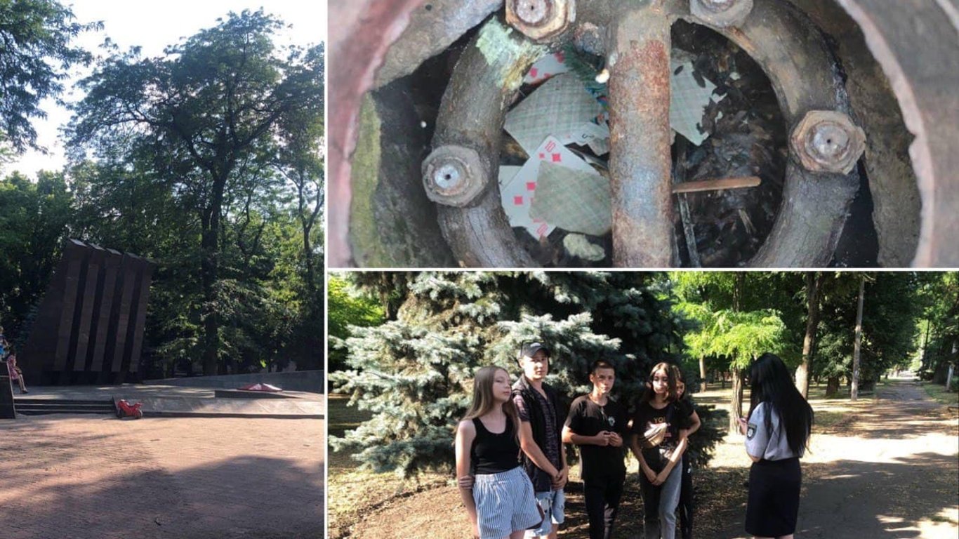В Кривом Роге подростки осквернили братскую могилу участников Второй мировой. Фото