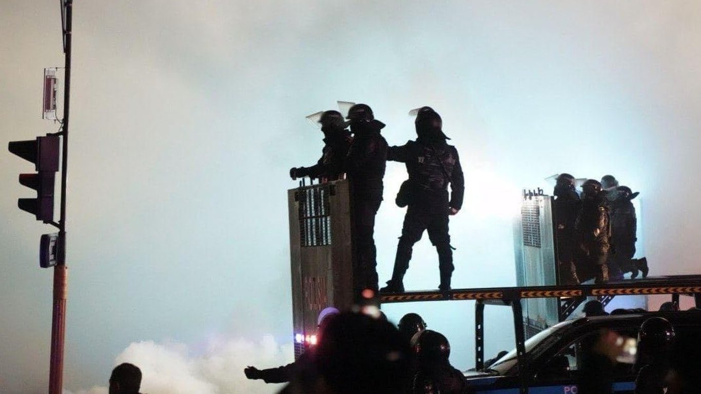 - 6 января около 50 единиц техники (БТР, бронемашины и военные грузовики) с вооруженными силовиками оцепили периметр площади в центре Алматы.