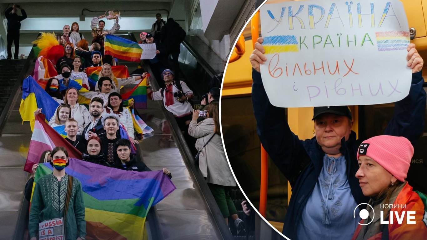 ЛГБТ+ сообщество с союзниками и союзницами, одетые в вышиванки, в воскресенье, 25 сентября, проехались харьковским метро. Это был первый в Украине "Метро Прайд".