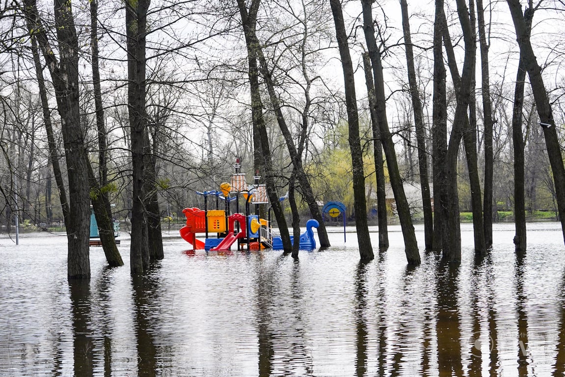 По данным Укргидрометеоцентра, пик весеннего наводнения в Киеве ожидают примерно в субботу 22 апреля. Из-за выхода Днепра из берегов подтоплены столичные парки "Муромец", Гидропарк, Труханов остров, залив Галерный, село Корчеватое и частные участки в районе Осокорков. В этом году уровень воды превышает прошлогодний на 0,5-1 метр.