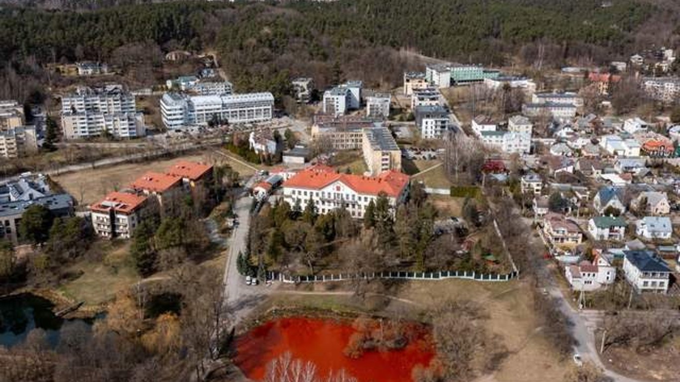 В Литве пруд у российского консульства выкрасили в кровавый цвет.
