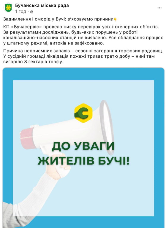 "КП "Бучасервіс" провело низку перевірок усіх інженерних об‘єктів. За результатами досліджень, будь-яких порушень у роботі каналізаційно-насосних станцій не виявлено. Усе обладнання працює у штатному режимі, витоків не зафіксовано", — йдеться в повідомленні.