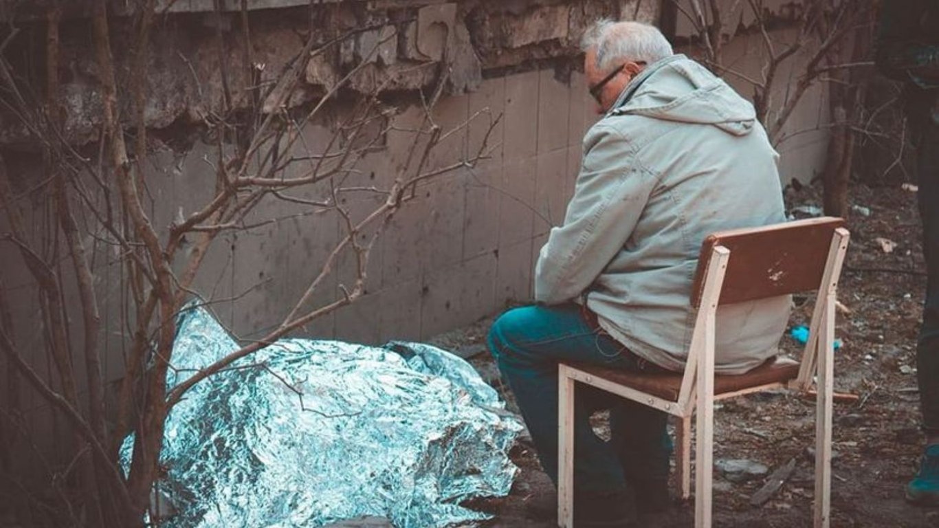 Він просидів біля мертвого тіла внучки просто на землі протягом кількох годин, аж поки чоловіку не принесли стільчик. Саме це фото облетіло всю мережу і стало черговим символом жорстокості та цинічності росіян.