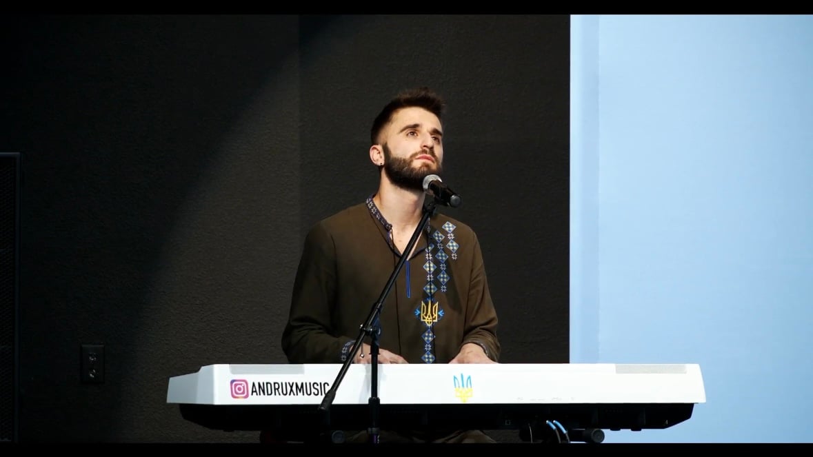 Благодійний захід розпочався з виконання гімну України, який випала честь співати ANDRUX (справжнє ім’я Богдан).