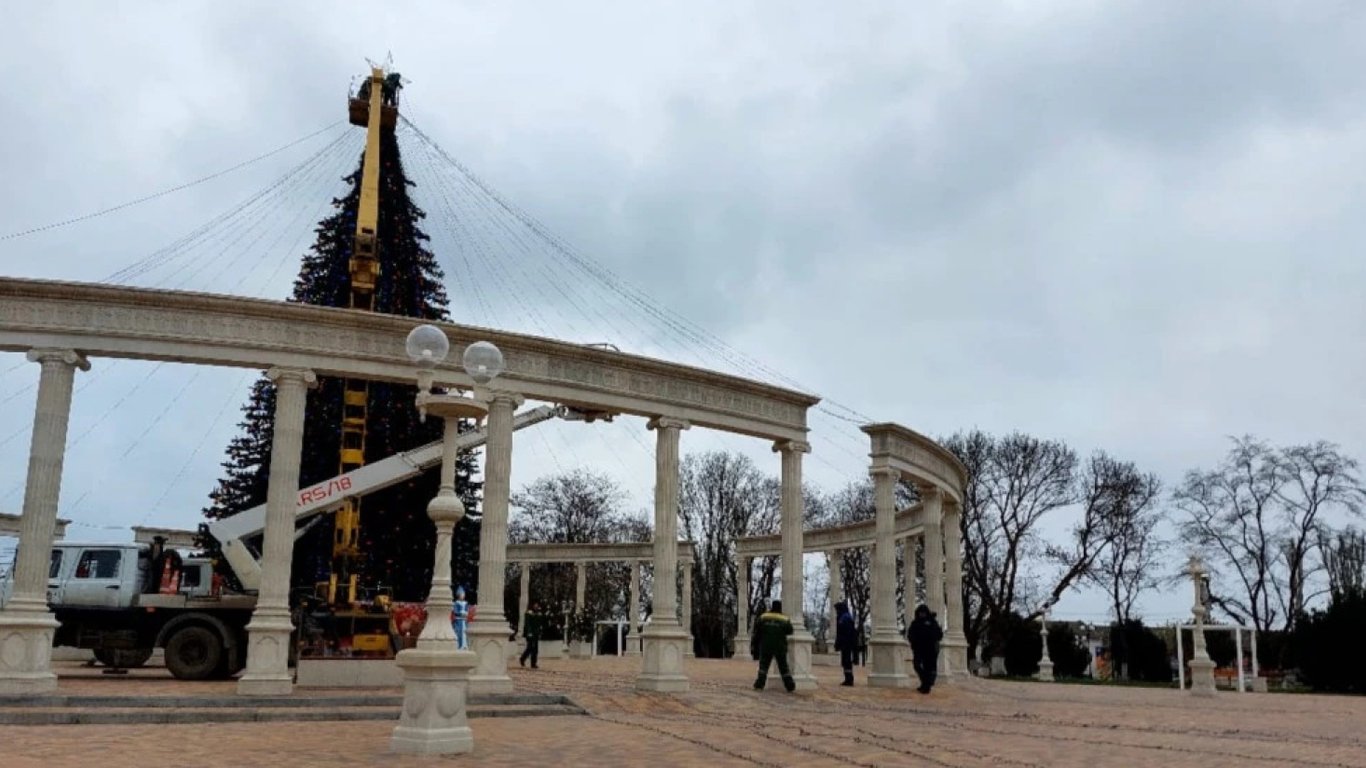 У Керчі встановили жовто-синю ялинку: окупанти казяться й знімають прикраси