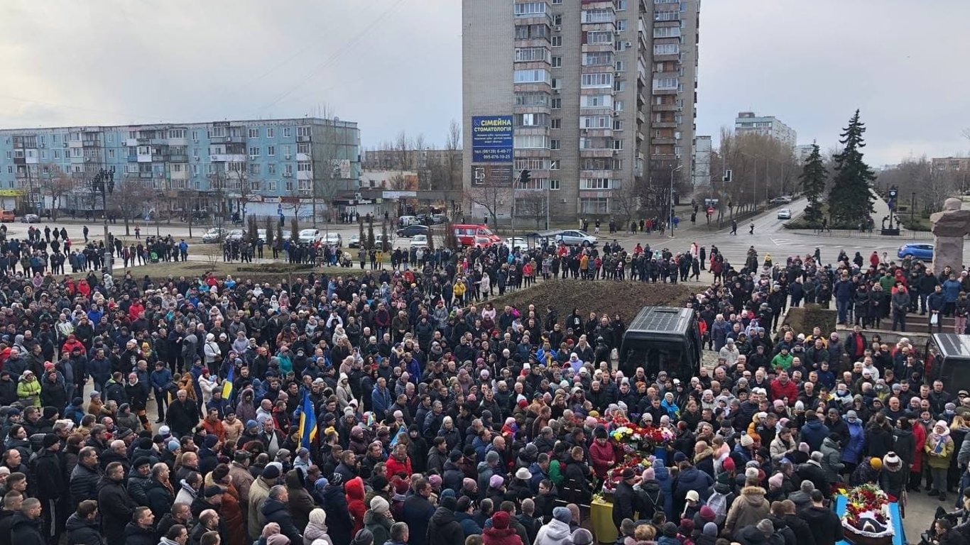 У Енергодарі, який зараз, як і ЗАЕС, перебуває під контролем окупантів, місцеві вийшли на демонстрацію, щоб попрощатися з загиблими героями, які боронили АЕС.