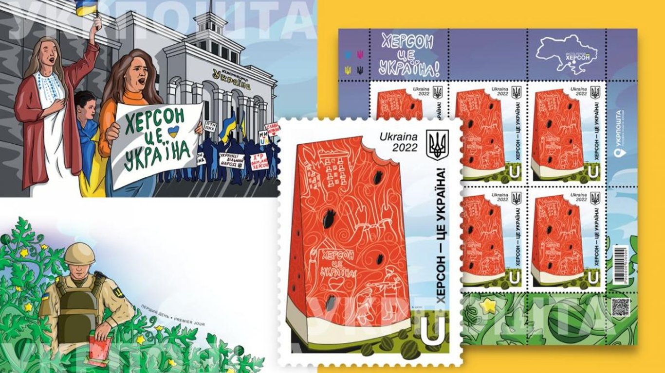 Укрпошта 9 грудня у Херсоні погасила нову марку "Херсон — це Україна!" Випуск присвятили звільненню обласного центру від російських окупантів, на марці зображений символ міста — кавун.