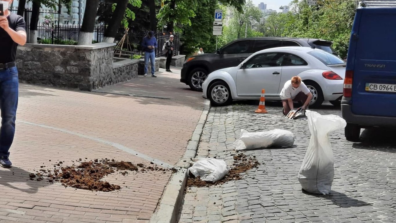 У Києві перед посольством Білорусі розсипали гній. Фото