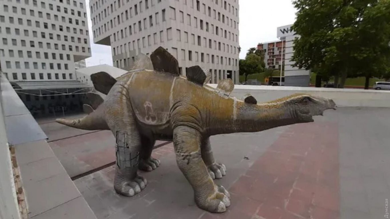 Напівпокинута фігура стегозавра - місцева визначна пам'ятка в містечку Санта-Колома-де-Граменет неподалік Барселони. Раніше вона була рекламою кінотеатру, що стоїть неподалік, проте вже багато років за нею ніхто не доглядає.