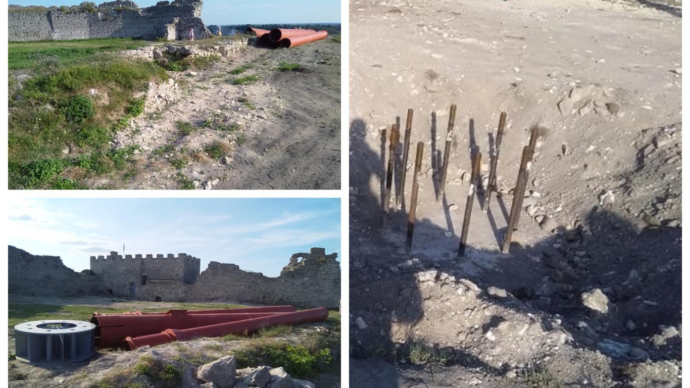 Савчук додав, що значну площу зачистили екскаватором, до пів метра висотою площі замку, вирили фундамент, зруйнувавши частину фундаменту будинку старости та банально залили бетоном. Труби просто скинули на давній фундамент.