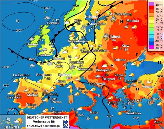 У п'ятницю, 25 червня, в Україні знову буде спекотно. Повітря прогріється до гарячих +36 градусів.