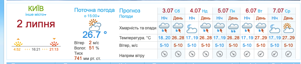 "На вихідних, а також з початком наступного тижня в Україні і на Київщині, зокрема, погода буде нестійкою. Подекуди можливі локальні короткочасні дощі та грози. Зазвичай вони утворюються вдень або в післяобідні години, мають дуже локальний характер і можуть супроводжуватися градом та шквалами", - уточнила синоптикиня.