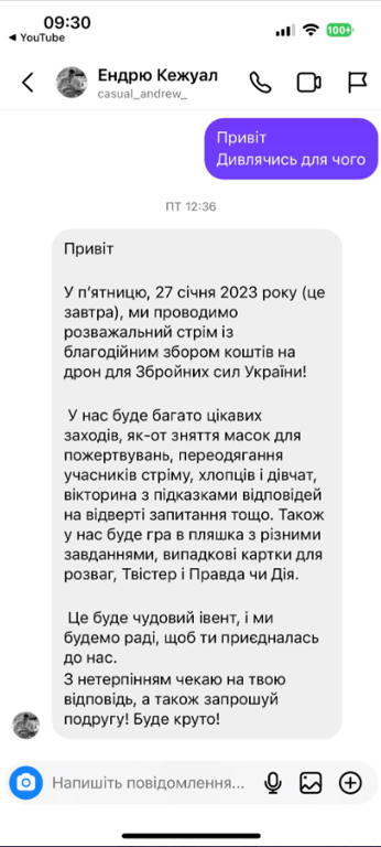 "Я висвітлила це запрошення, бо воно дуже невинно написано. Хотіла попередити дівчат, аби вони були обережні. Бо ми не захищені в наш час", — каже дівчина.