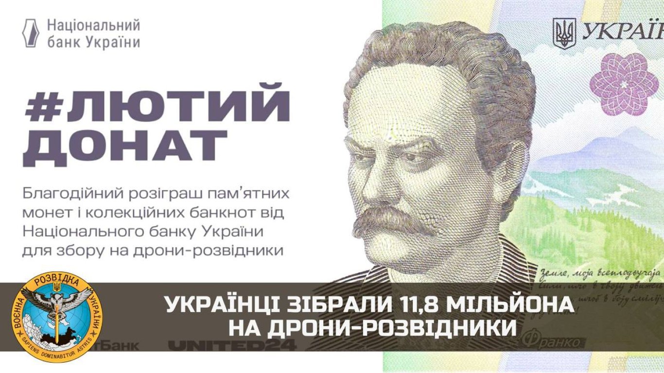 24 лютого Національний банк за підтримки ПриватБанку та платформи United24 оголосив благодійний збір "Лютий донат" на безпілотники-розвідники "Чаклун".