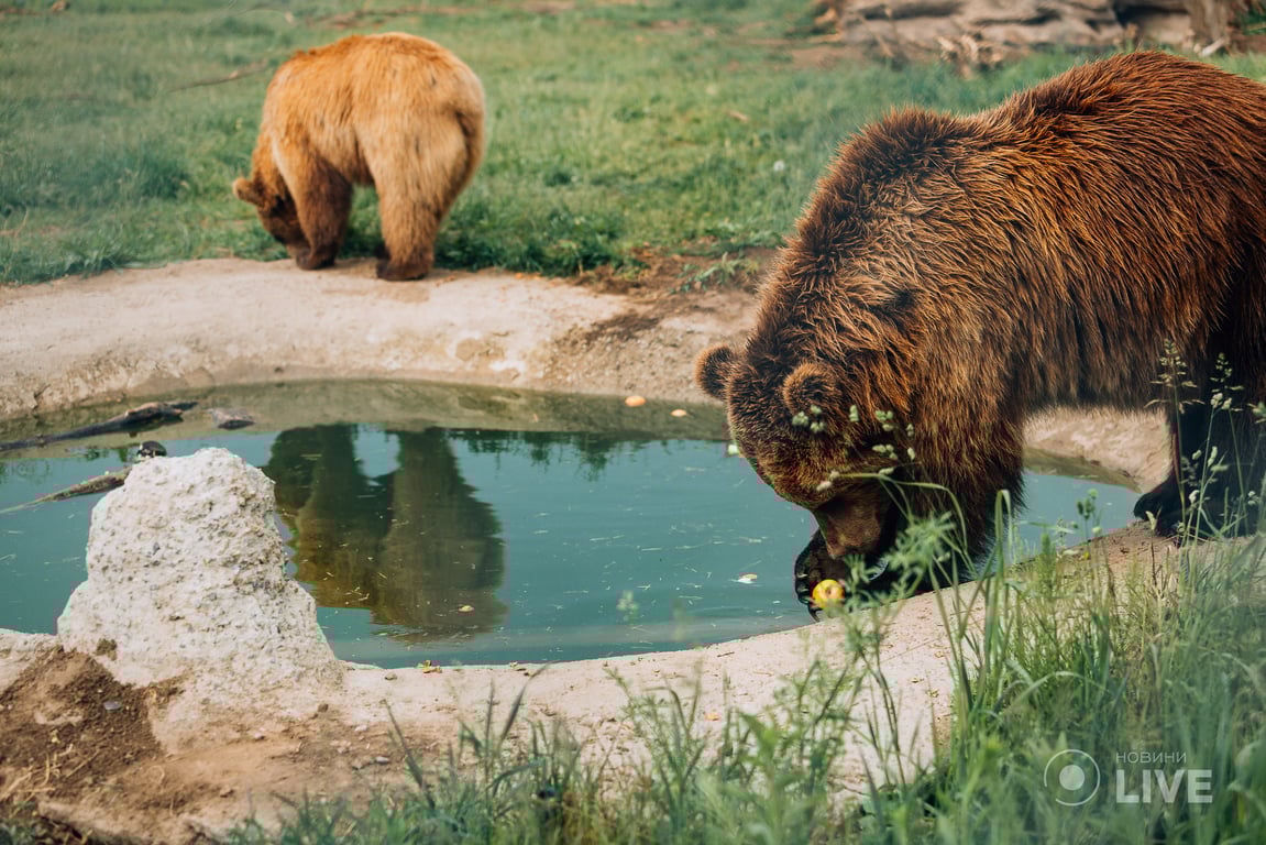 "Загалом дорослі ведмеді — одинаки, вони живуть кожний на своїй території, і самець з самицею зустрічаються лише у період розмноження. Але у неволі буває по-різному — ось Люба з Михасиком дуже потоваришували. Іноді, звісно, сваряться, але некритично. А так все роблять разом — їдять, грають, відпочивають", — говорить Марина.