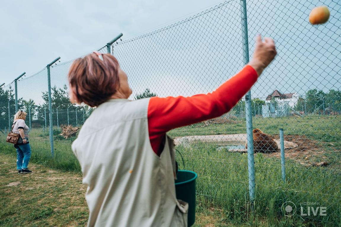 "Коли вона сюди потрапила, вона, звісно, дуже стресувала, але на відміну, наприклад, від Синочка чи Михасика, у вольєр вийшла одразу і одразу ж з усіма поскандалила. Вона взагалі за характером — така собі бабуся біля під’їзду. Коли у сусідньому вольєрі поруч з нею жили ведмежата, вона на них тупала, щоб тихіше бігали і не будили її", — каже зоологиня.