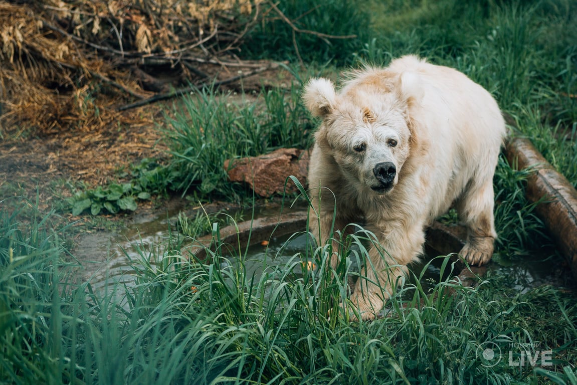 "Ведмеді живуть близько 30 років, тобто дуже велику частину життя Синочок прожив у маленькій клітці. Відповідно отримав купу захворювань: серце, судини, артроз, проблеми з зубами — стоматологам довелося дуже багато з ним працювати", — розповідає головний зоолог Київського зоопарку та співзасновниця притулку "Біла скеля" Марина Шквиря.