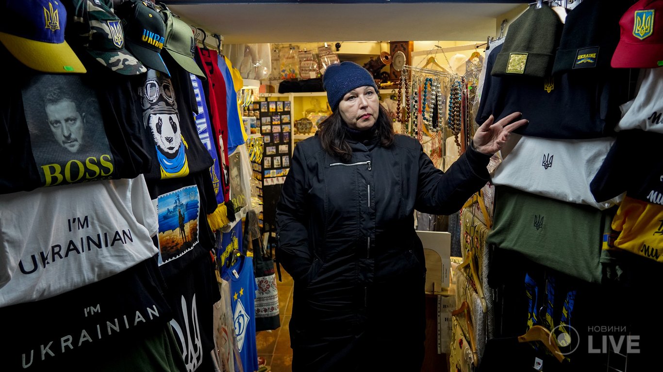 "А ще приходять військові і купують шеврони, футболки. Військові часто обирають з написом "4.5.0", — говорить продавчиня.